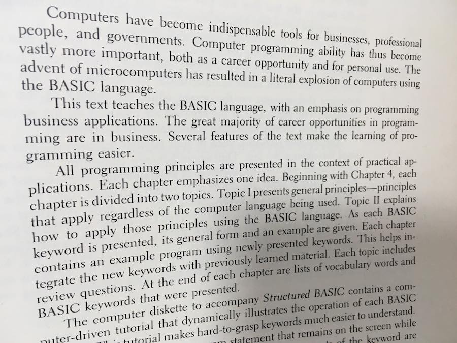 Teaches the BASIC language, with an emphasis on programming business applications. Several features of the text make learning of programming easier.
