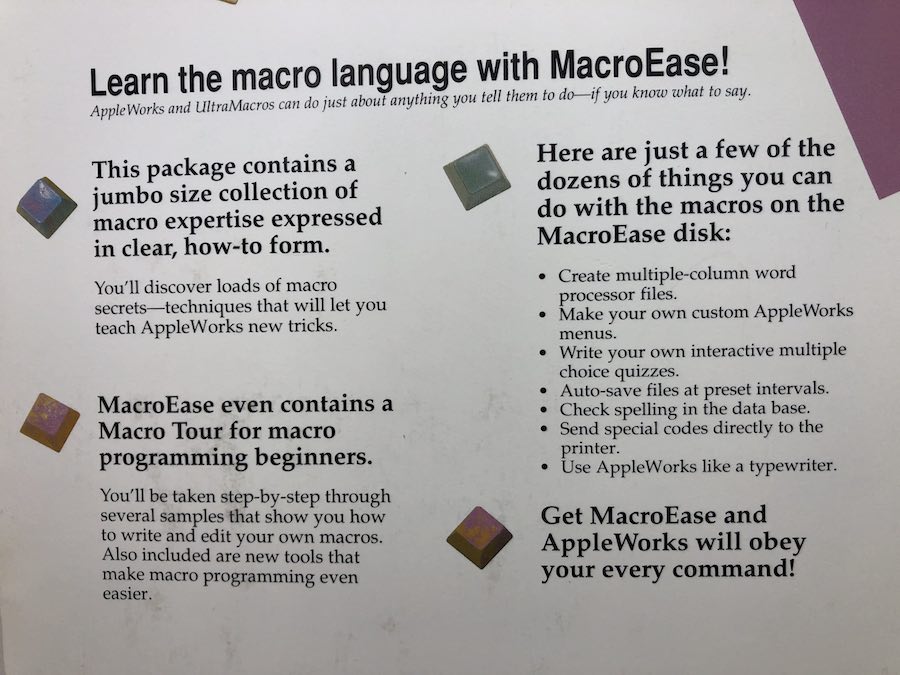 This package contains a jumbo size collection of macro expertise expresses in clear in clear how-to form. Discover loads of macro secrets. Create your own custom AppleWorks menus, write your own interactive multiple choice quizzes, balance your checkbook, do multiple column word processor files and more.