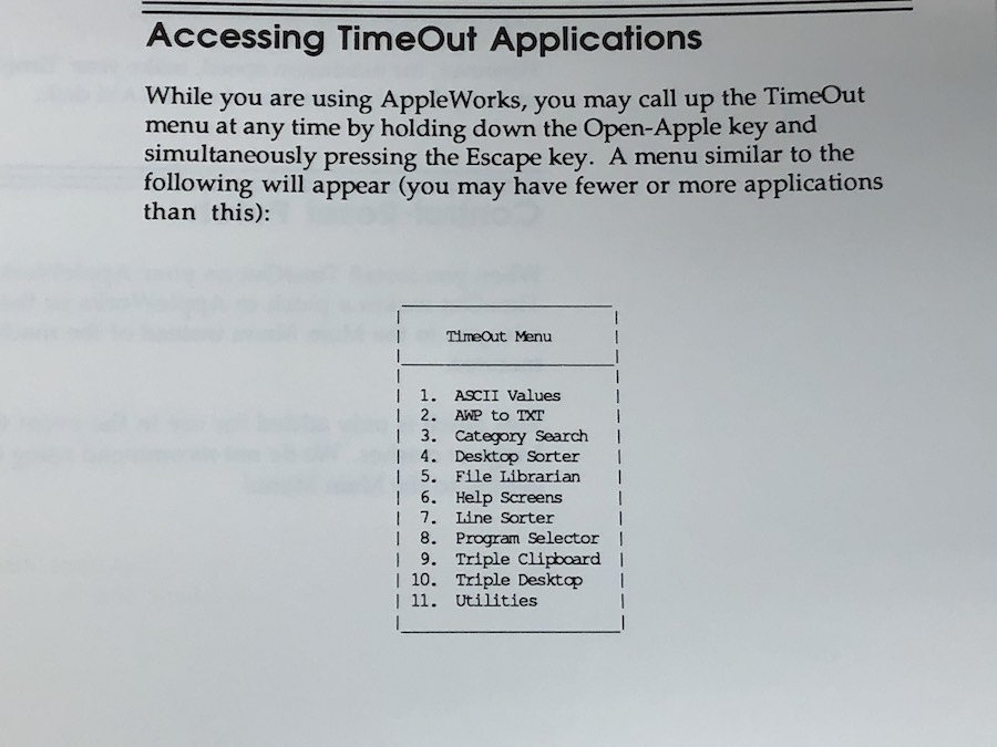 PowerPack AppleWorks additions gives you: Triple Desktop, Triple Clipboard, Program Selector, ACSII values, Help Screens, File Librarian, Desktop Sorter, Category Search, AWP to TXT, and Line Sorter