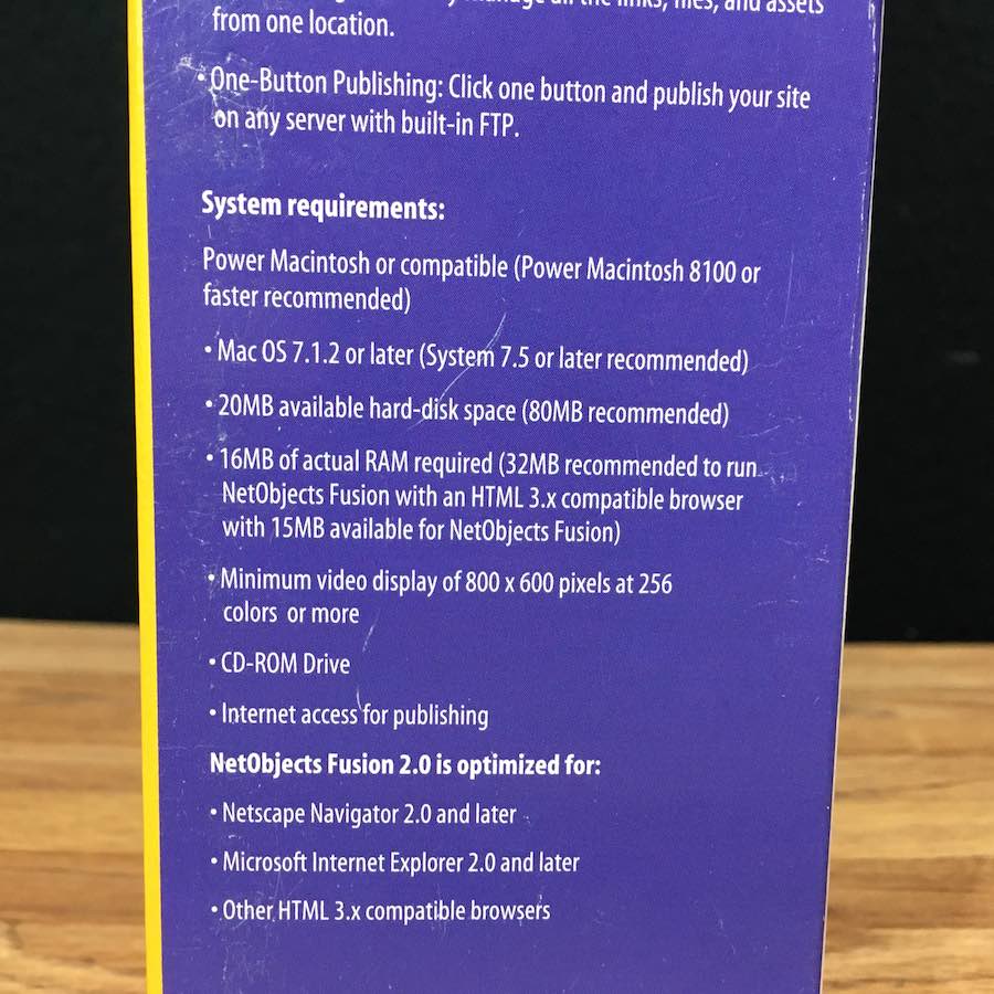 - 16MB of actual RAM required (32MB recommended to run NetObjects with an HTML 3.x compatible browser with 15MB available for NetObjects Fusion)